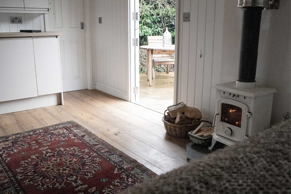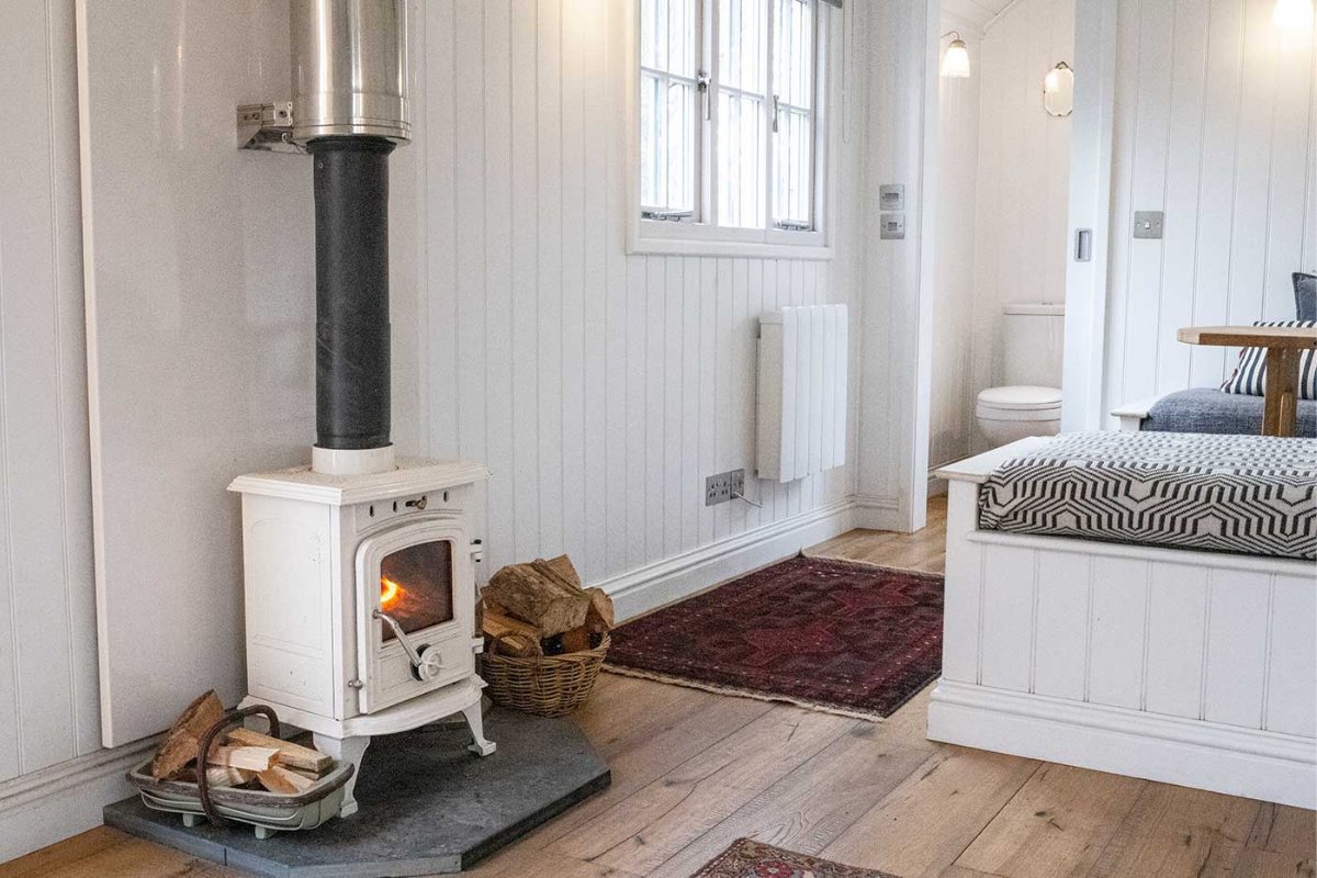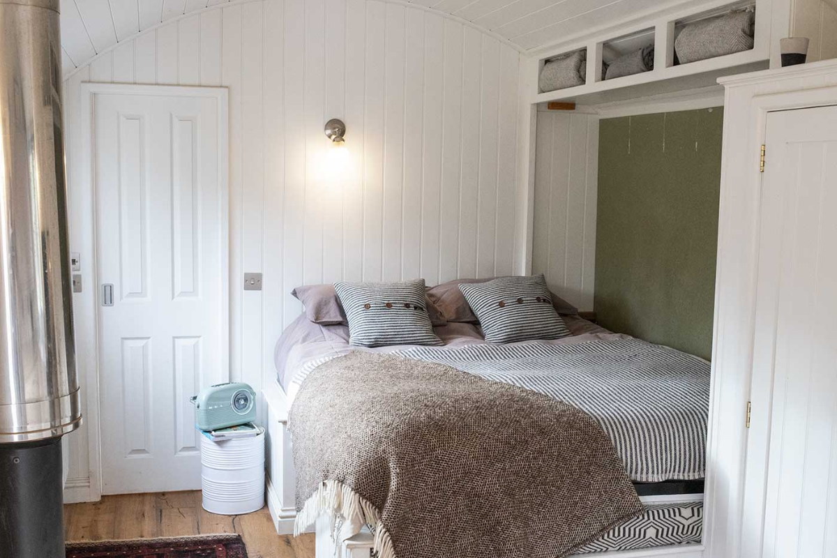 The long wagon of Ragnarr is a beautiful and simple space on its own, but it becomes the center of a brilliant adventure when you start to explore your corner of Spring Park. You can BBQ on the deck under starlit skies, soak in the hot tub after a day of exploring, or have a private screening of your favorite movie in your very own cinema shed. Inside, Ragnarr maximizes every inch of space. At one end, the well-equipped kitchen has everything you need if you prefer not to cook outdoors. The king-sized bed folds neatly into the wall to reveal a table and sofa seating. A sleigh bed in a small separate room off the main living area and a centrally located wood-burner fill the whole space with warmth and a gentle glow.