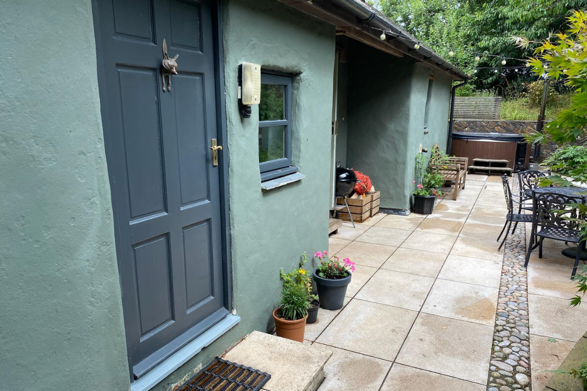 Outside has a large lawned garden and patio area with a table and chairs, perfect for sitting out of an evening with a glass of wine.