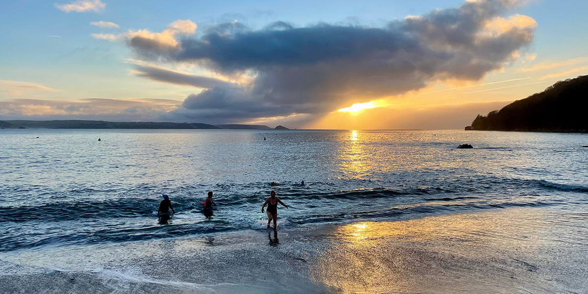 This is a really popular swim spot. When Whitsand Bay is crashing with surf after strong south-westerlies, Cawsand’s sheltered bay will be as calm as a millpond. Parking is easy, with a car park just a short walk away. The beach is dog-friendly, and there is a shelter to change in, with toilets next door. Benches on a concrete plinth at the back of the beach offer a good viewing spot for non-swimmers. For experienced swimmers, there are swim buoys to aim for, and rock pools to swim through, while beginners can do lengths of the bay (my preferred option in winter.